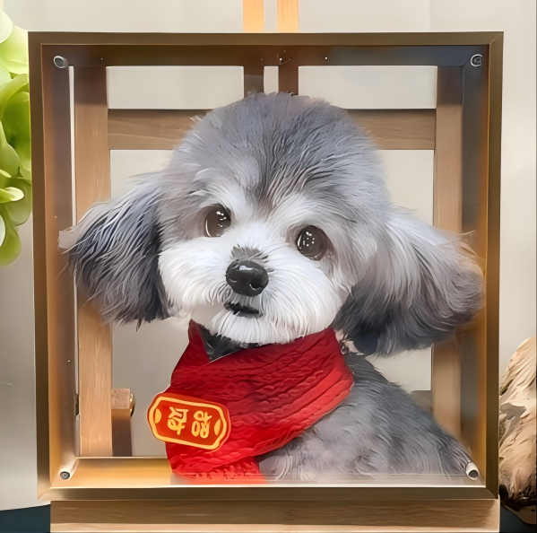 The 3D portraits of fur babies are made of multi-layer acrylic panels, meticulously painted by professional artists. The photo frames are crafted from golden metal, which are both eco-friendly and durable.